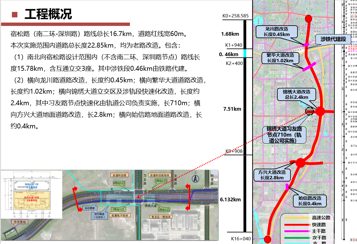 宿松路快速化刷新工程为市大建设妄想重点项目,,由市城乡建设局委托betway体育公司举行全历程代建。。。。。。该项目北起南二环,,南至深圳路,,长约16.7km,妄想为都会快速路,,妄想红线宽度60m。。。。。。工程建设内容主要包括:蹊径、桥梁、隧道、排水、泵站、管廊、绿化、照明、交通、电力土建、给水、中水及漂亮大道习友路节点刷新等,,工程估算总投资约85亿元。。。。。。该项目建成后对构建都会快速路网系统、缓解都会南向交通拥堵、推动都会社会经济生长、提高都会综合竞争力均具有主要意义。。。。。。
